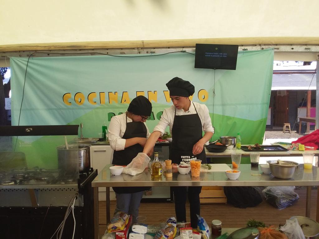 En estas intervenciones los estudiantes de 3ero y 4to C, especialidad Gastronomía, expusieron degustaciones de tres platos típicos: sándwich chacarero, empanadas de horno y calzones rotos.