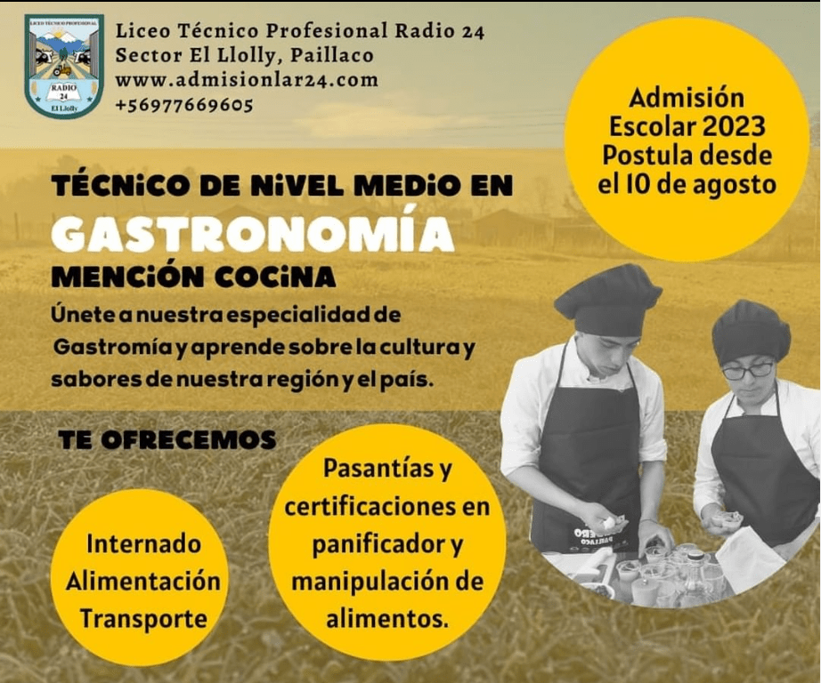 En la conmemoración de los 80 años de la educación Técnico Profesional, la especialidad de gastronomía del Liceo Técnico Radio 24, con su coordinador Jean Arcos Vera y su profesora Yenifer Fuentealba, invitaron al Chef de la agrupación Chef de Los Ríos el señor Carlos Huillitrul, a compartir una vez más con los y las estudiantes futuros cocineros y cocineras. La actividad consistió en confeccionar un menú de 3 tiempos. El cual consistió en una: